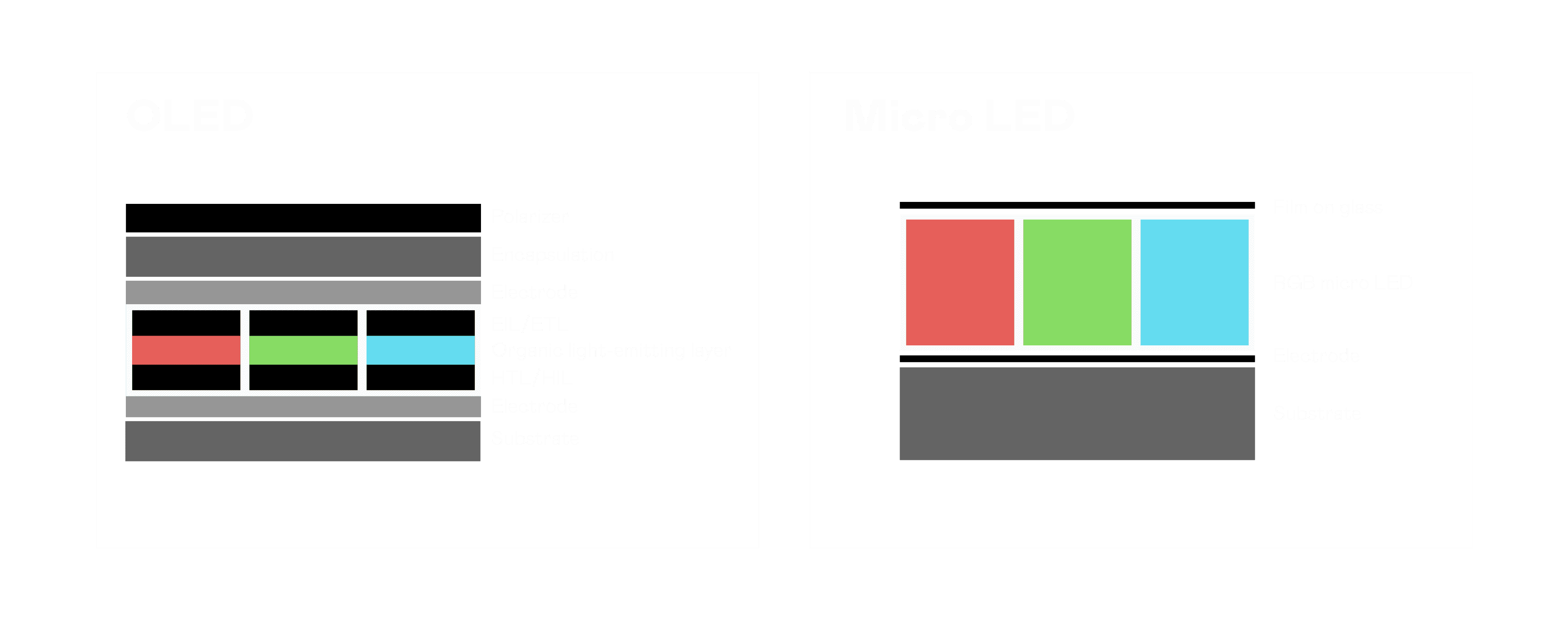 以 LED 做为显示画素,,可让 LED 的发光效率发挥到极致,,从而让显示器具备优异的亮度表现,,不论是在户外或室内,,,,均具备出众的显示效果。。。。同时,,,,与使用有机材料的 OLED 相比,,LED 具备更稳定、、、寿命更长的特性,,,,不仅不会有画面烙印问题,,,而且更不容易出现故障、、、、坏点。。。。