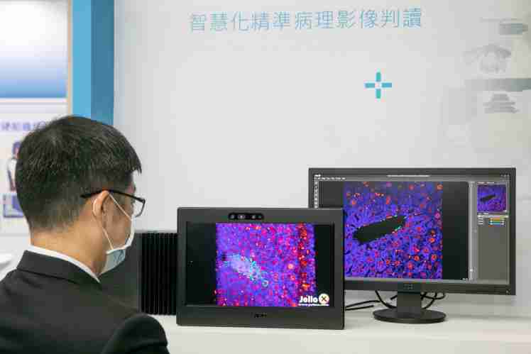 达擎携手捷络生技与凌华科技合作展出 3D 病理检测影像解决方案,,透过 AI 技术呈现高分辨率病理影像,,,,实现精准诊断 |
