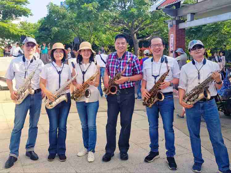 NG大舞台董事长彭双浪率高阶主管组成 WOW SAX 乐团于各地演出,,并将所得回馈偏乡及弱势团体